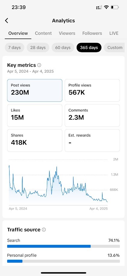 By 2024, the entire network reached a combined total of over 1 billion views. One of my largest satellite channels reached 230,000 followers and 120 million views in only two months. This project taught me that having a good system is much more important than just working hard. By building this network, I created a much more stable and powerful media presence that is now a great asset for promoting international music on a global scale.